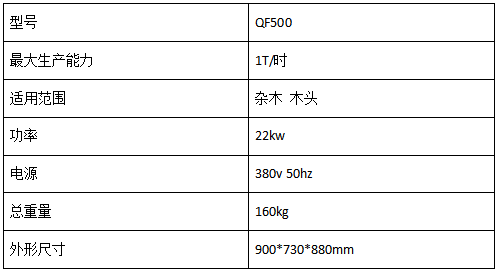 ①. The machine adopts cutterhead hammer structure, which is used to φ≦ 140mm wood, with built-in replaceable screen (hole diameter 8mm-20mm), and is crushed and molded by one slice.